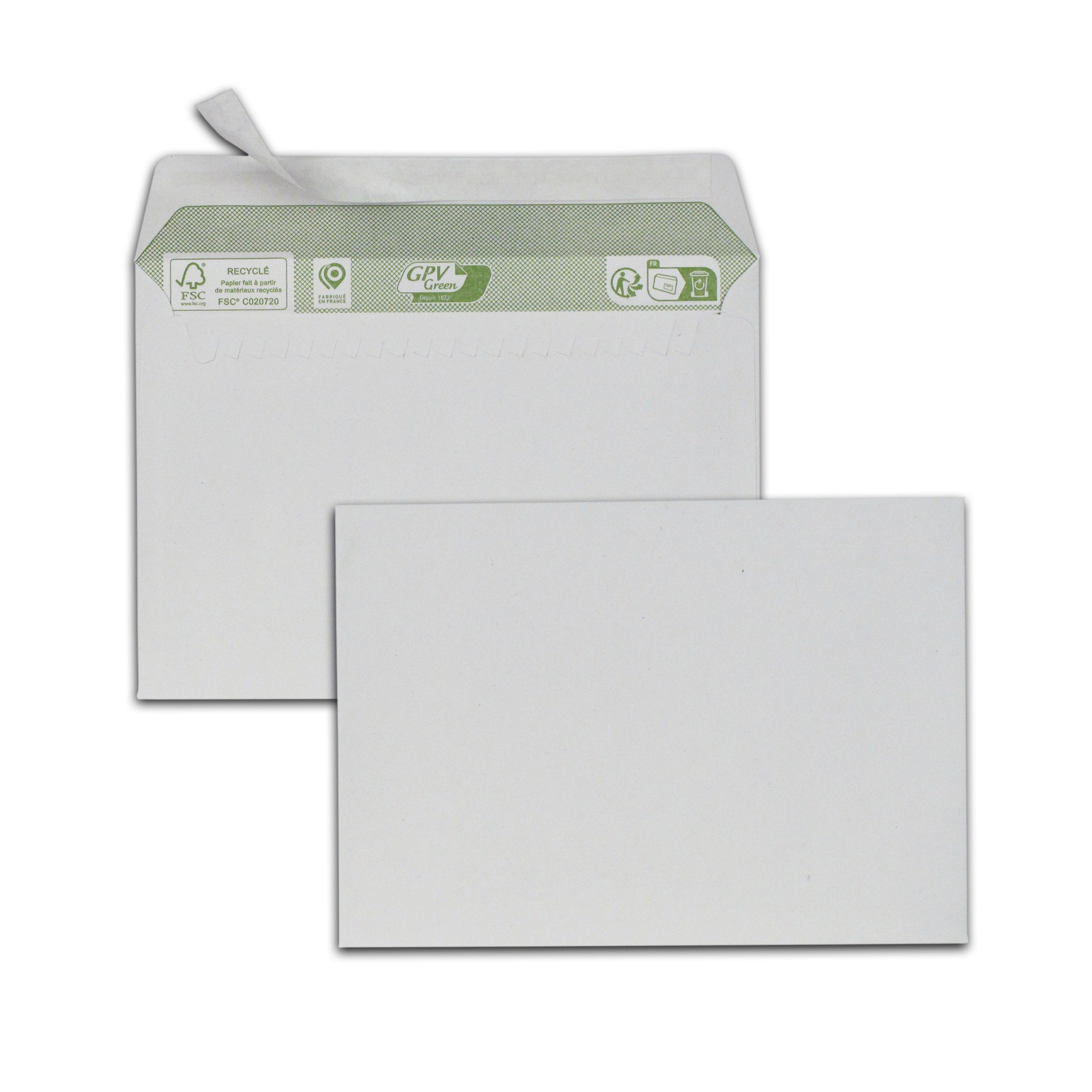 Pour vos courriers et correspondances d’entreprises, inscrivez-vous dans une démarche éco-responsable en choisissant nos enveloppes personnalisées made in France en papier blanc recyclé FSC® extra blanc. Nos enveloppes de chez GPV Green, fabricant français d’enveloppes depuis 1872, vous offrent un papier extra blanc 100% recyclé, une fermeture renforcée et une fenêtre en papier cristal recyclable.